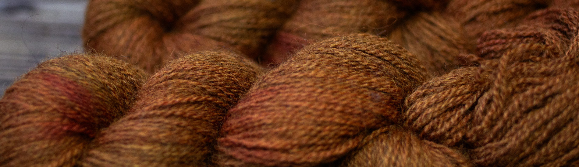 Handgefärbtes Garn mit einer Mischung aus Bluefaced Leicester und Masham.