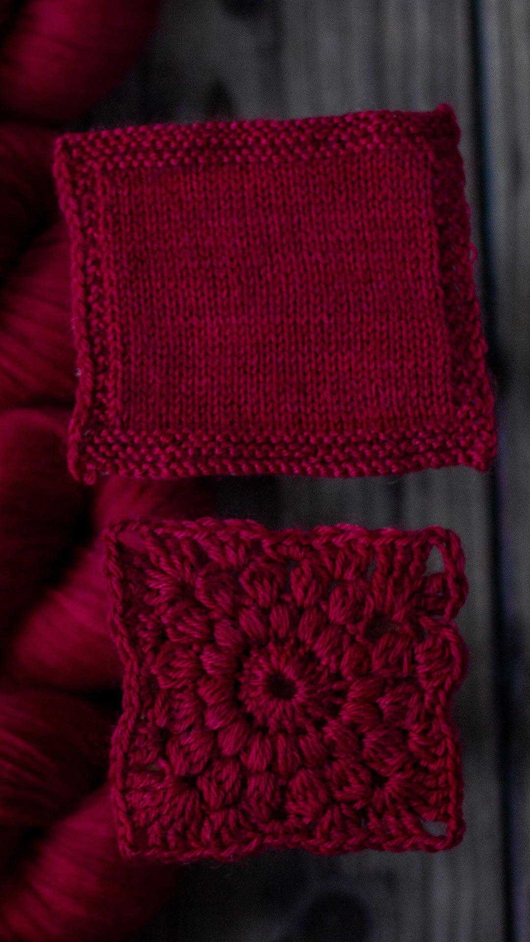 Wir empfehlen Handwäsche des fertigen Strickstücks, sanft in einem Handtuch auswringen und flach trocknen lassen.