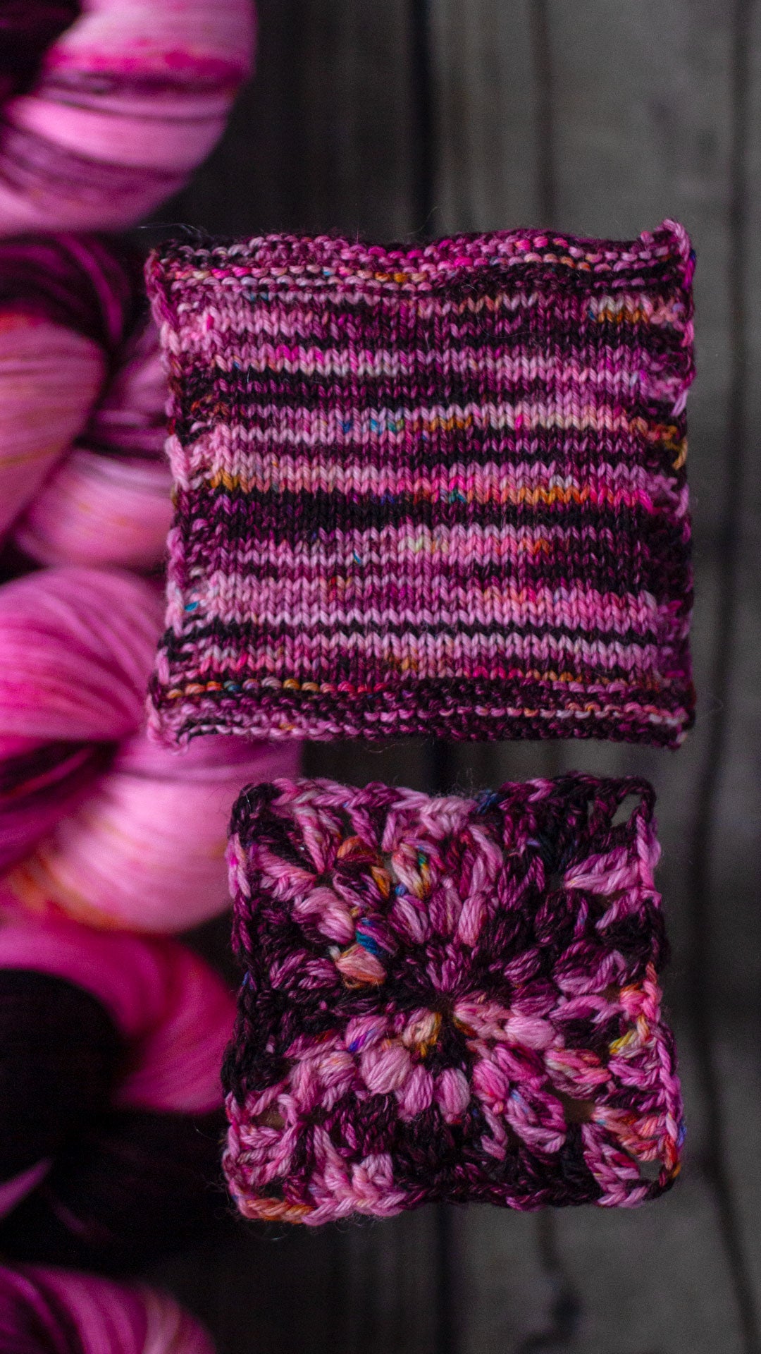 Wir empfehlen Handwäsche des fertigen Strickstücks, sanft in einem Handtuch auswringen und flach trocknen lassen.