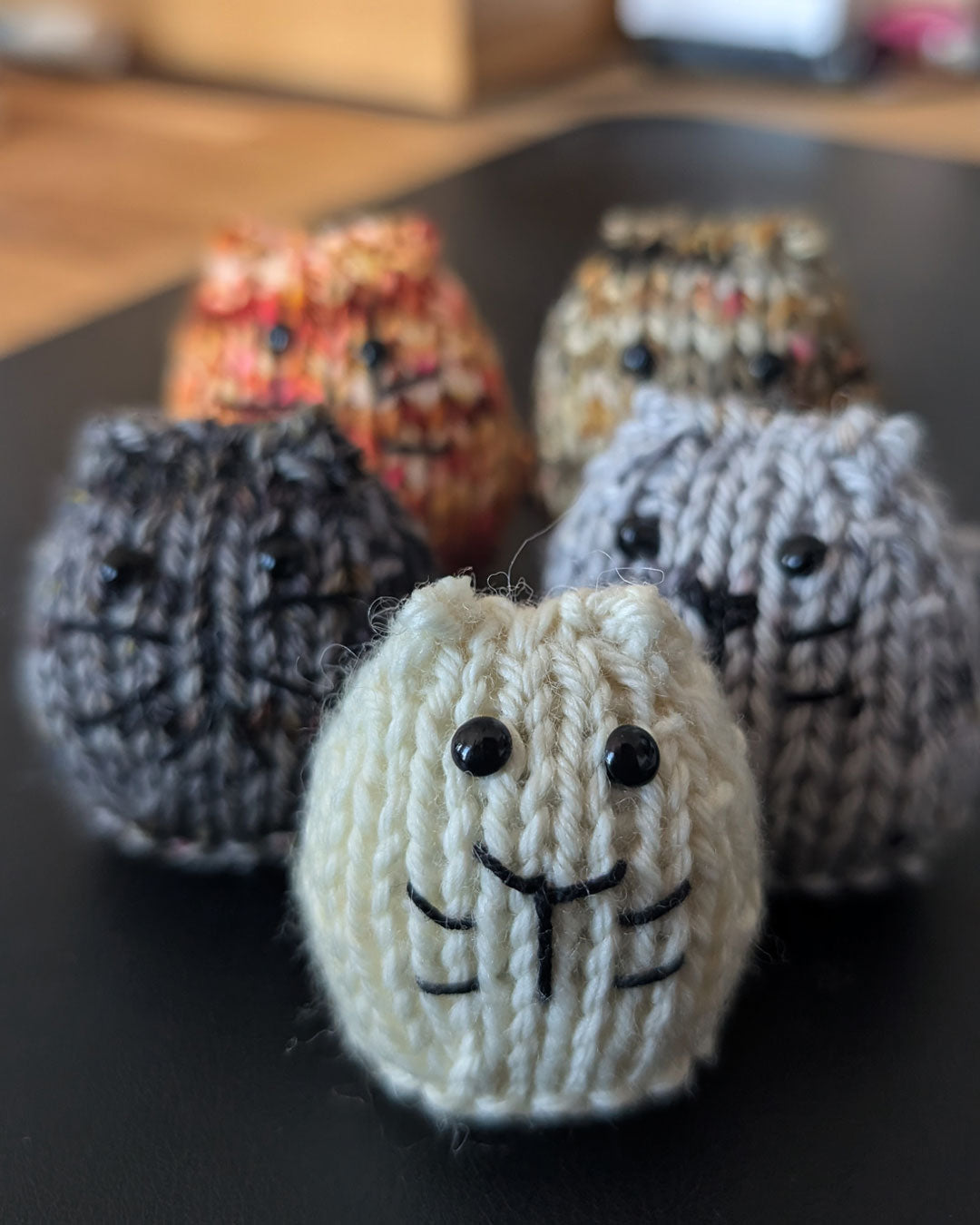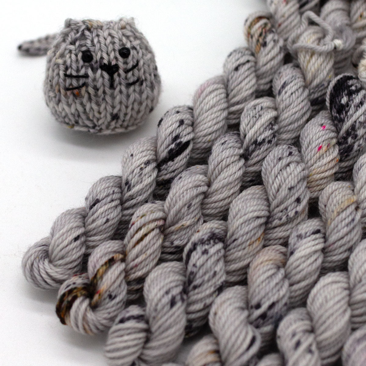Ihr erhaltet ein Set in der gewählten Farbe, aus dem ihr zwei Mini Cats stricken könnt.