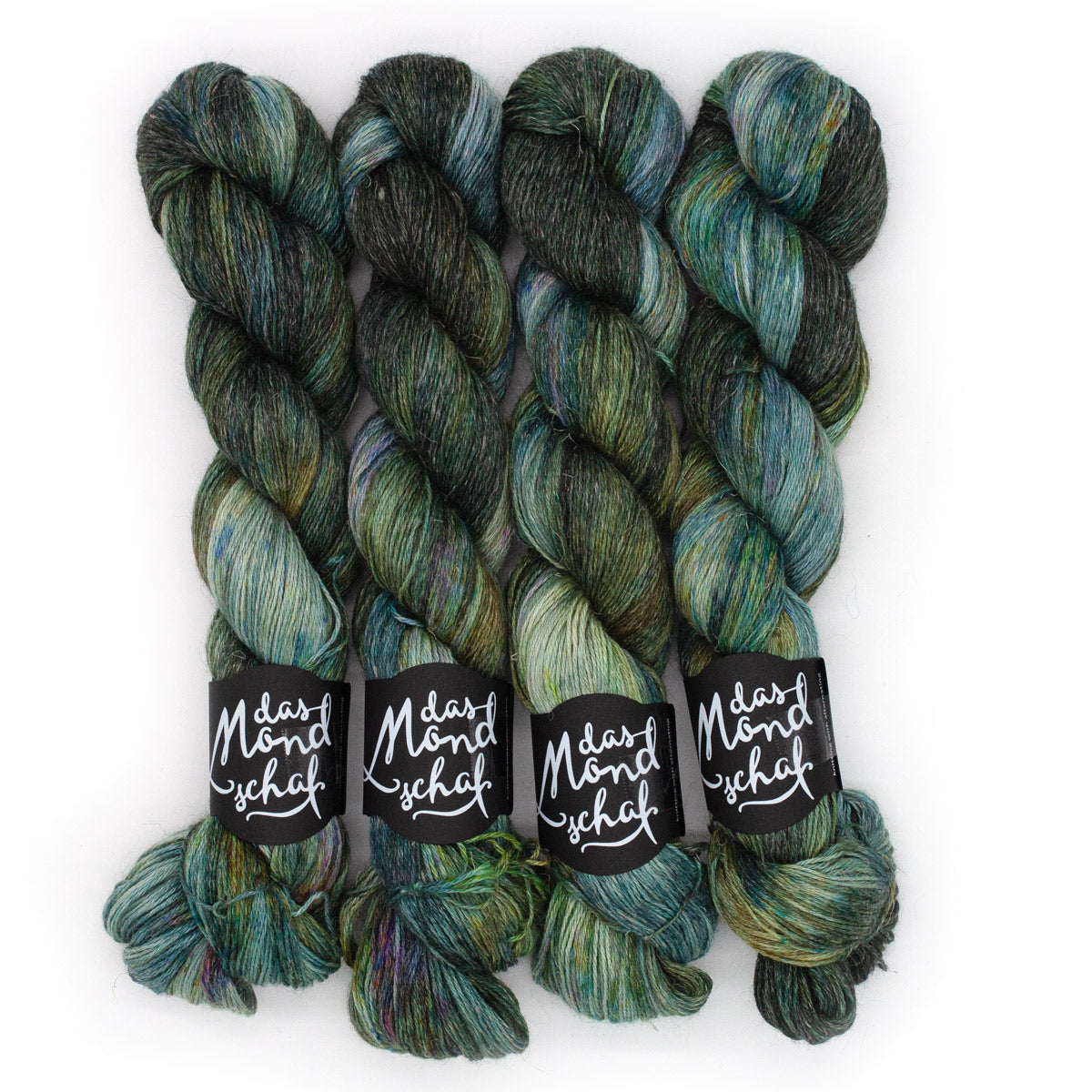 Handgefärbtes Garn aus 50% Alpaka 25% Seide und 25% Leinen.