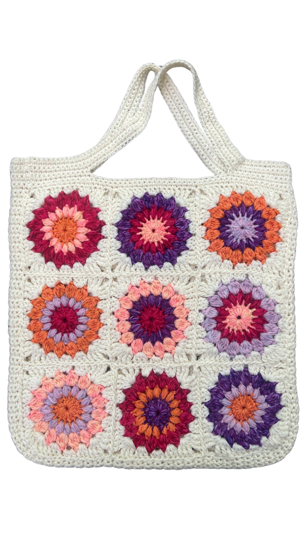 Mit diesem Set könnt ihr die Buttercup-Bag häkeln, die Anleitung dafür könnt ihr hier kostenlos herunterladen. Die Tasche wird dreifädig gehäkelt und ihr erhaltet eine ca. 37x41cm große Tasche.