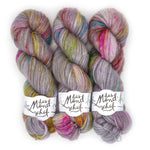 Dieses Garn entsteht durch Alpaka-Fasern, die durch einen Baumwollschlauch geblasen werden. Dadurch ist es super luftig-leicht und trotz 300m eher ein Worsted-Garn und mit nur drei Strängen könnt ihr schon blitzschnell einen Winterpullover stricken.
