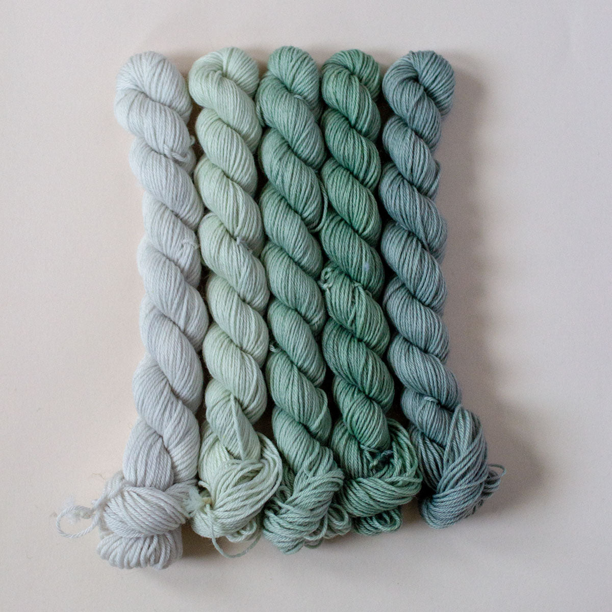 Hier bekommt ihr den grünen Farbverlauf unseres Temperaturdecken-Sets bestehend aus fünf Strängen.
