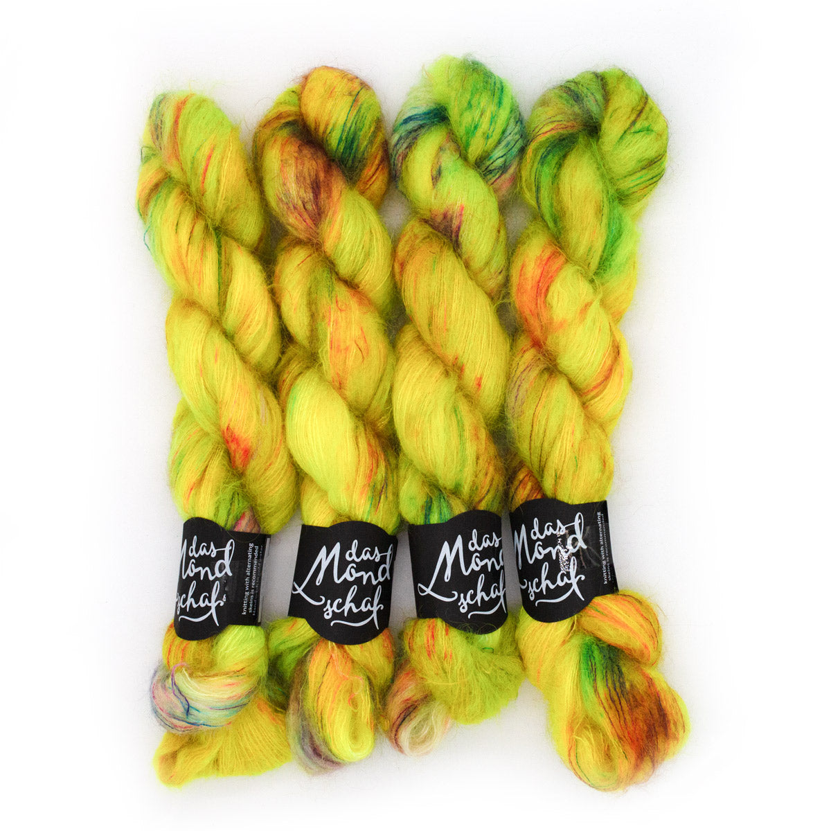 Handgefärbtes Garn aus 72% Kidmohair und 28% Maulbeerseide