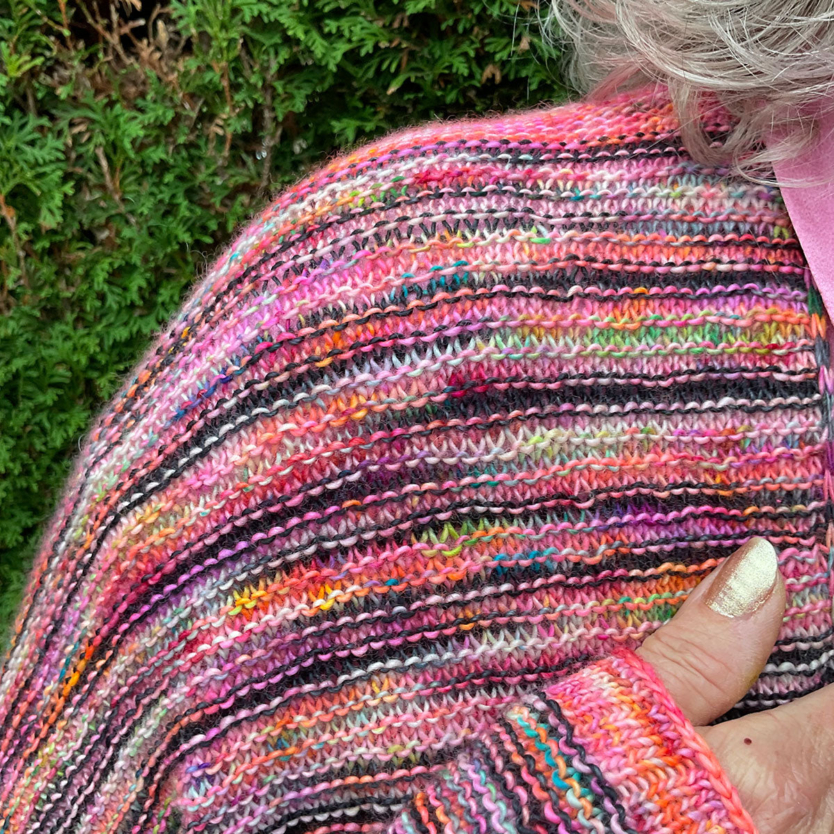 With this wonderful collaboration between Pink Queen Yarns and das Mondschaf, you will receive a set for the Girlfriends Cardigan by ChrisBerlin.