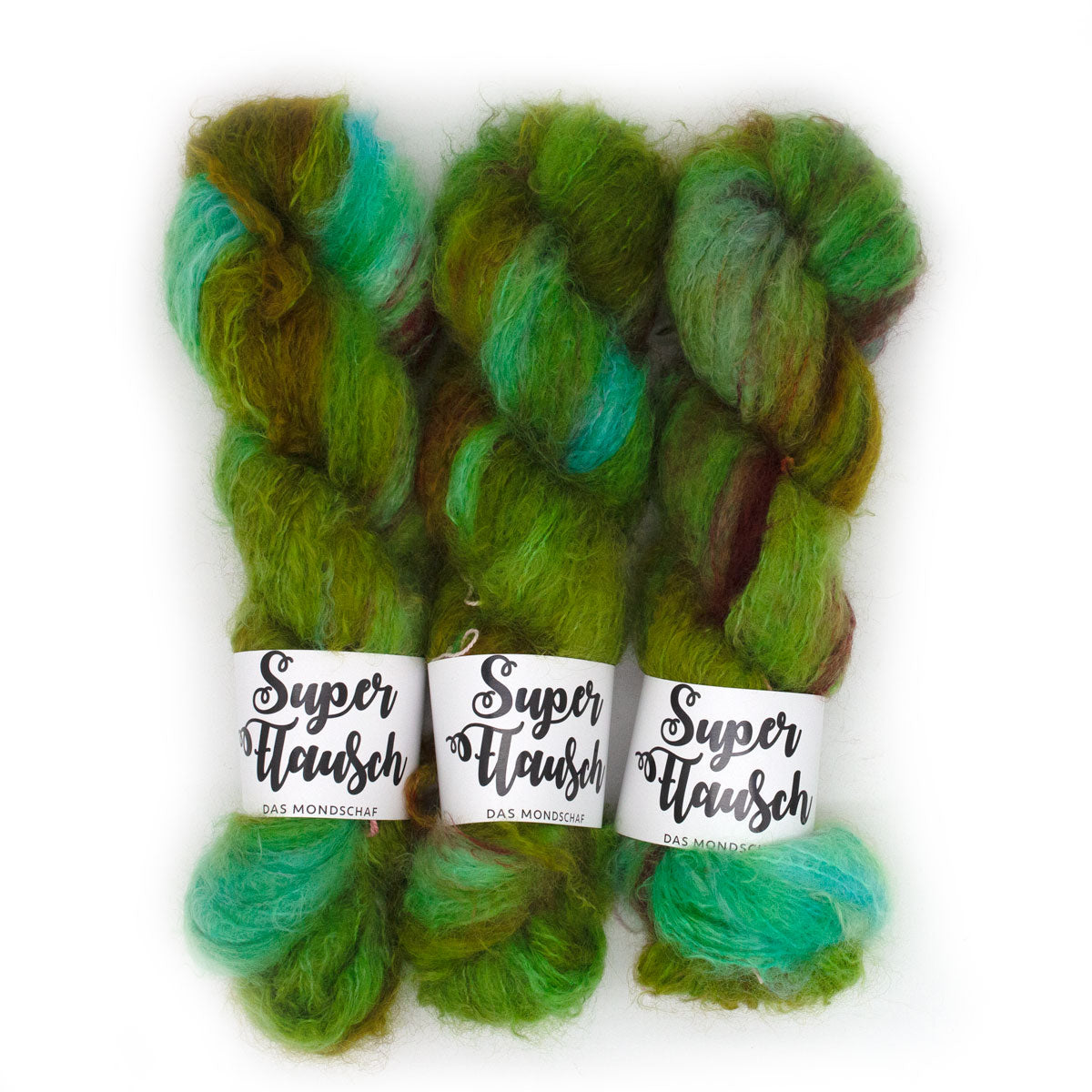 If you like mohair, you'll love Superflausch (which can be translated as "Super Fluff"). With this yarn, you can knit scarves, sweaters and jackets for the cold season in a flash. If you like something a little more pompous, combine it with "Alles Pailletti".