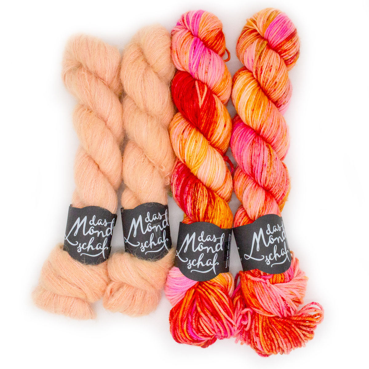 One set consists of two skeins of Hydra or Draco and two skeins of Lupus for the Fleur de Provence Foulard or the Fleur de Provence Cowl by Inselprinzessin.
