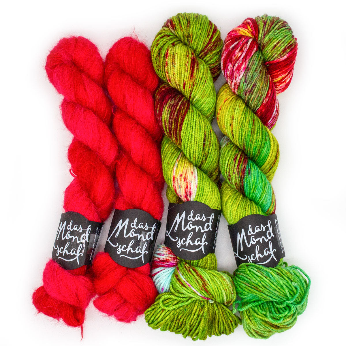 One set consists of two skeins of Hydra or Draco and two skeins of Lupus for the Fleur de Provence Foulard or the Fleur de Provence Cowl by Inselprinzessin.